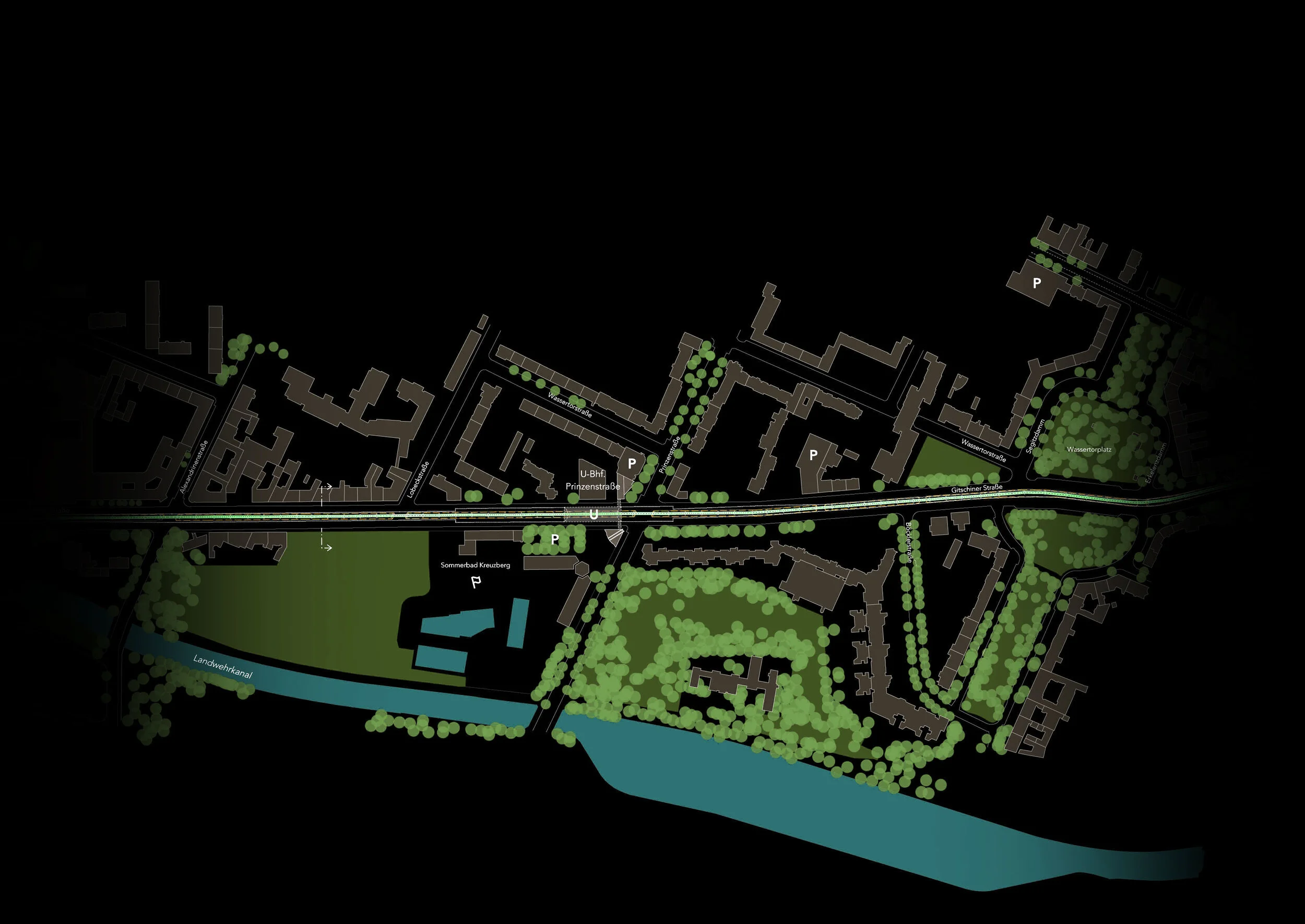 A group of citizens (Reallabor) got together to repurpose the public spaces underneath one of Berlin’s main U Bahn lines. They set out to create a hybrid space that combines a bike lane with vegetation and public infrastructure, dreaming of an inclusive new mobility corridor and public park.